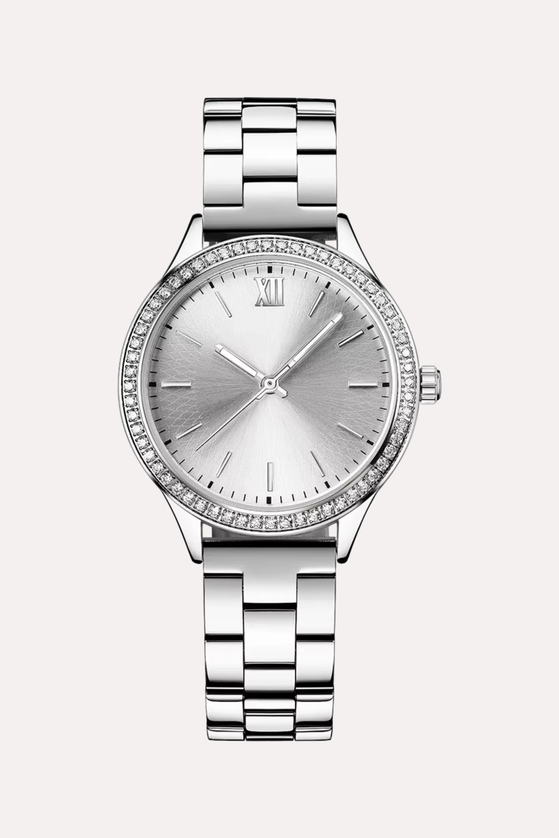 The Celestia Watch pairs timeless elegance with everyday functionality, creating a sophisticated statement on the wrist. Its radiant sunburst dial and crystal-studded bezel reflect a refined aesthetic, while its reliable quartz movement ensures precise timekeeping. Designed to complement both formal and casual looks, Celestia is where classic charm meets modern craftsmanship.